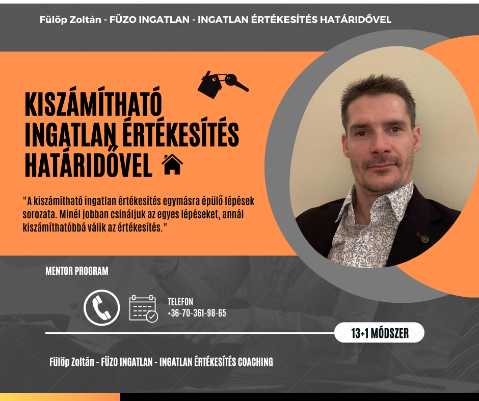 Fülöp Zoltánt egy ismerősöm ajánlására kértem fel az ingatlanom értékesítésére. Az őszintesége a segítőkészségével kombinálva meggyőző volt. Ezt megkoronázta a gyorsaságával. Egy hét alatt fedél alá hozta az ügyletet. Amennyiben hasonló helyzetbe szeretnének kerülni, jó szívvel ajánlom.